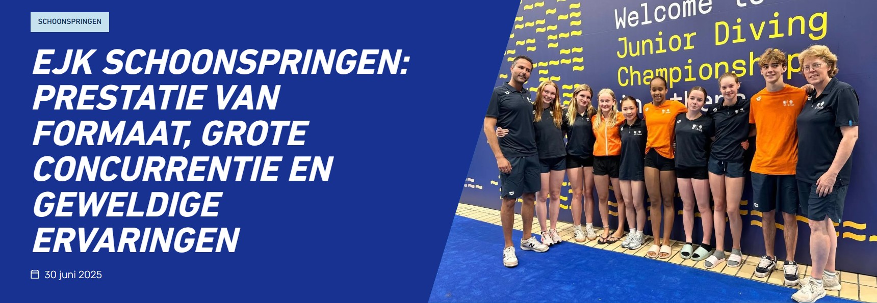 Op 21 juni vertrok de EJK ploeg schoonspringen naar het Griekse Athene voor de Europese junioren Kampioenschappen schoonspringen. Het team staat onder leiding van Angelique de Vroome, bondscoach schoonspringen.